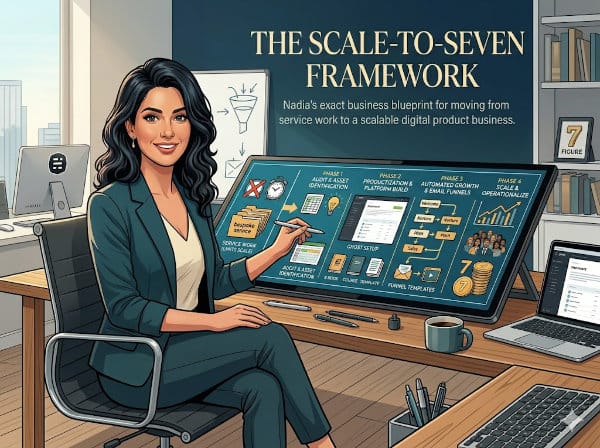 Nadia's exact business blueprint for moving from service work to a scalable digital product business. Includes her Ghost setup and email funnel templates.